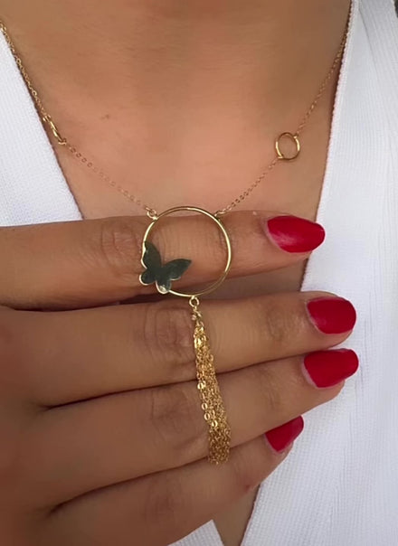This 18K gold butterfly necklace offers a delicate and refined touch, designed to be both lightweight and a sophisticated complement to your jewelry ensemble.