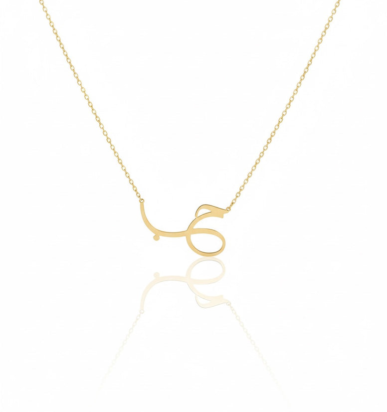 This 18K gold necklace features the Arabic word حب, symbolizing love, crafted with exceptional quality and precision.