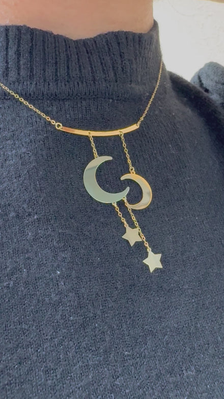 The 18k Gold Moon & Star Necklace features a modern and refreshing design perfect for any collection.