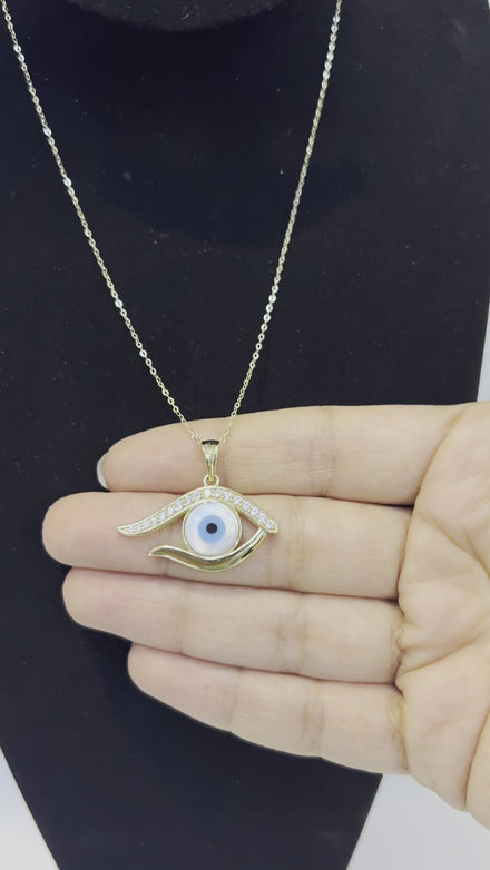 18K Gold Eye Design Pendant Evil-Eye with 45 cm Chain with high quality Zircon Stone